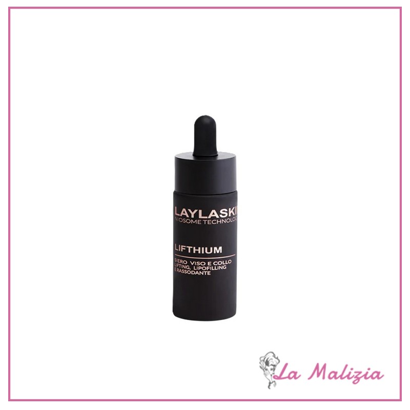 Laylaskin Lifthium siero viso e collo lifting, lipofilling e rassodante. Una microemulsione ricca di principi attivi nata per contrastare e prevenire gli effetti connessi all’invecchiamento della pelle. Ogni goccia di LIFTHIUM contiene: – 3 acidi ialuronici per contrastare le rughe e le zampe di gallina – Chlorella Vulgaris per rassodare attivamente viso, collo e décolleté – Estratto vegetale della stella alpina con un’azione lifting – Sapogenina ad effetto lipofilling 4 ingredienti attivi combinati in un unico siero PRO-AGE.